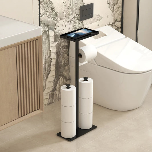 Rack Dourado de Banheiro com Suporte para Papel e Bandeja